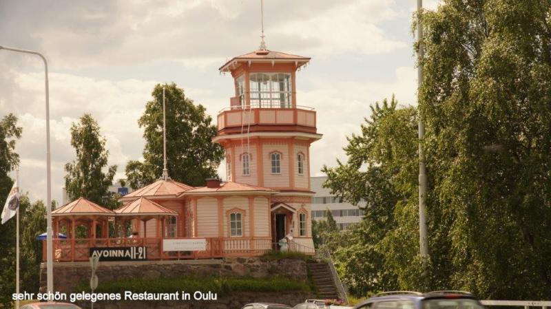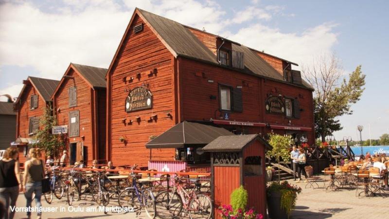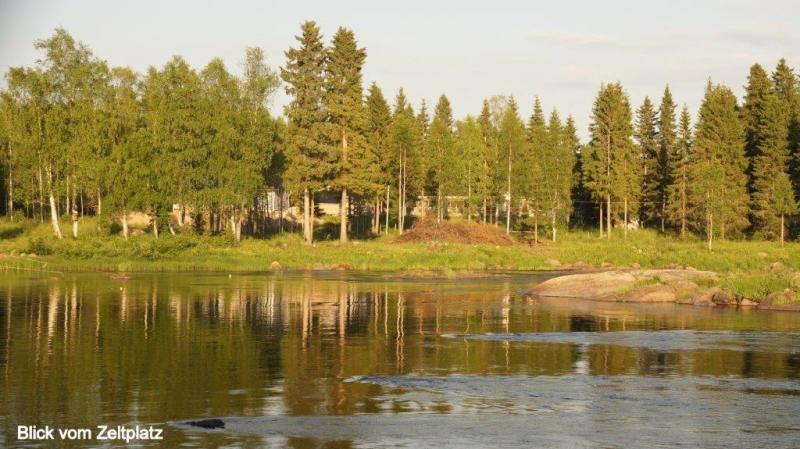 Aus dem Nachbarzelt erschallen – wie gewohnt − noch tiefe Schlafanzeichen, als ich mich nach kurzer Nacht aufmache in Richtung Dusche. Der Campingplatz hier auf einer Halbinsel am Rande von Oulu ist relativ groß und wir haben wieder Chipkarten zum Öffnen der Sanitärräume und der Küche. Dies ist immer dann lästig, wenn man was zu tragen hat und die Karte erst einmal aus der Hosentasche friemeln und dann in den Slot stecken muss. Auf dem Campingplatz sind auch noch eine Reihe anderer Zelte. Da wir gestern Nachmittag (Sonntag) um 18:00 Uhr uns ja kurz vor Ladenschluss noch mit neuem Proviant haben eindecken können, gibt es eine reichliche Auswahl zum Frühstück, dazu gehört auch für jeden ein gekochtes Ei. Beim Frühstück diskutieren wir die weitere Ausrichtung unserer Abenteuerreise. Wir werden leider wegen einer persönlichen Disposition den von Karl-Josef angeregten Plan nicht weiter verfolgen, nach Rovaniemi (die Stadt in dem der Weihnachtsmann mit seinem Schlitten und den vielen Rentieren zu Hause ist) fahren und über den Nordpolarkreis nach Pello, um dann am Grenzfluss Klukkolaukoski (finnisch-schwedische Grenze) nach Tornio (finnisch) bzw. Happaranda (schwedisch) zurück zu fahren (gesamt ca. 300 km = 3 Tage). Die Option zum Nordkap zu fahren war ohnehin schon aufgegeben worden, da wir hierfür weitere 1,5 bis 2 Wochen benötigt hätten, aber auch wegen der fehlenden Transportmöglichkeit unserer Fahrräder von Narvik nach Luleå mit dem Zug. Bevor es heute Morgen aber weiter geht, wird nochmal Heiners Vorderrad inspiziert. Aber der Mantel lässt sich nicht „hubbelfrei“ auf der Felge zentrieren. Aber wir haben ja einen Ersatzmantel mit und der wird nun aufgezogen. Auch der Faltreifen (Kevlarring) lässt sich nicht einwandfrei zentrisch aufziehen. Aber er sitzt besser als der Drahtreifen (Drahtring) und Heiner entscheidet, so nun einmal zu fahren. Ein Anruf bei der Fahrradseelsorge in Brühl (Ferdi) hat zum Ergebnis, dass vermutlich die Felge zu schmal für die Reifenbreite ist. Also müsste bei nächster Gelegenheit ein neuer schmalerer Mantel gekauft werden. Wir packen unsere Räder und bringen unsere Chipkarten und den Zeltanhänger zurück zur Rezeption. Hier treffen wir Edi und Werni aus der Schweiz noch und wünschen einander gutes Weiterkommen und Wetter. Ein kurzer Schlenker am Strand vorbei, der hier fast kurortmäßig in Anlehnung an die deutschen und polnischen Kurorte ausgebaut wird. Hier sehen wir Leute im Sand in der Sonne liegen und zum ersten Mal auf unserer Reise etliche auch im Meer plantschen. Danach geht es bei sonnigem Wetter wieder zurück über 2 kleine Inseln in die Stadt Oulu. Wir schlendern über den Wochenmarkt und nehmen die Atmosphäre der größten Stadt Mittel- und Nordfinnlands auf, über die Heiner am Vortag bereits berichtet hat. Beim Verlassen der Stadt kommen wir an einem schön gelegenen See mit Wasserspielen vorbei, bevor es dann von hier aus ca. 40 km über eine Landstraße an dem Städtchen Haukipudas vorbei geht. Hier holen wir uns in einem Geschäft Fertigsalate, zum Nachtisch Mirabellen aus Spanien und für Heiner natürlich mit Schokocreme gefüllte Teilchen. Wir sind die Fastfood-Gerichte der letzten Mittagspausen einfach leid. Das letzte Stück fahren wir nur noch entlang der Hauptküstenstraße 4 oder auch E75 bezeichnet und dies immerzu auf einem ca. 30-50 cm schmalen Randstreifen. Dieser wird begrenzt durch Rattermarken zur Straße hin und zur anderen Seite durch den unbefestigten Seitenstreifen. Schwierig wird es immer die Balance zu halten, bzw. in der Spur zu bleiben, wenn große LKWs oder Wohnwagengespanne an uns vorbei fahren und eine Druckwelle erzeugen. Insbesondere dann, wenn diese dann noch entsprechenden Gegenverkehr haben und nicht weiter ausweichen können. Aber Folgendes soll hier auch erwähnt werden. Immer wieder finden wir bei Ortsdurchfahrten begleitende gut ausgebaute Fahrradwege. Das Besondere in Finnland ist jedoch, dass an Kreuzungsbereichen Fahrradwege jeweils als Unterführungen unter den Hauptstraßen geleitet werden, ein hohes Maß an Verkehrssicherheit. Unterwegs treffen wir einen Radler, der nach Tornio fahren möchte (noch ca. 65 km), nur um dort in die Sauna zu gehen, wie er im nebeneinander Herrollen erzählt. Dann gibt er wieder Gas und fast eine Stunde sehen wir nichts mehr von ihm. Dann taucht er auf einmal wieder von hinten auf und gibt zu verstehen, dass er Knieprobleme hat. Wieder fährt er ein Stück voraus, aber dann müssen wir ihn überholen. Bleibt ein Geheimnis, ob er es noch bis zur Sauna nach Tornio geschafft hat. Ja was sollen wir denn sagen, mit unseren Zipperleins, wenn wir wie an den letzten Tagen immer so um die 100 km bei Sonnenschein oder Regen absolvieren. Am Abend kommen wir auf einen Zeltplatz, der unser bisher mückenreichstes Domizil sein wird. Die Hinweisschilder auf den Zufahrtstraßen zeigen eine 3-Sterne-Kategorie an. Diese muss sich der Campingplatzbesitzer irgendwoher besorgt haben, oder sich selbst zugesprochen, denn der Platz ist äußerst primitiv. Es gibt zwar eine Küche, aber die Kochplatten reagieren eher willkürlich und Trinkwasser gibt es nur an einem Hahn draußen auf dem Hof. Auch der Rest ist bescheiden. Wir lagern aber schön an einem Fluss gelegen und bewundern Angler mit einer Engelsgeduld beim Fliegenfischen. In einiger Entfernung auf der anderen Seite plantschen einige Mädels im Fluss. Deutlich mutiger als wir Männer. Aber in die braunen Fluten zu steigen, Mücken umschwärmt, daran Wohlgefallen zu empfinden, können wir uns nicht so recht vorstellen. Einen der Angler, der nun schon eine ganze Zeit vergeblich mit voller Montur aus dem Wasser steigt, frage ich, ob er denn erfolgreich gewesen wäre. Heute nicht, aber er zeigt mir stolz auf seiner kleinen Digitalkamera wie er einen ca. 60 cm langen Lachs hält, den er wohl vor ein paar Tagen gefangen hat. Früh kriechen wir heute in unsere Zelte und träumen von sonnigen Tagen an schönen 