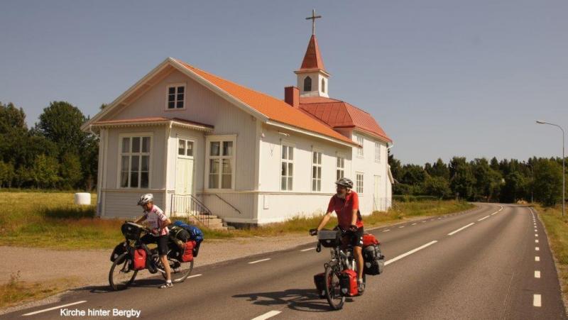 Den gestrigen Ruhetag haben wir zwar zum Waschen genutzt, aber außer Karl-Josef (die Rohloffnabe braucht immer etwas mehr Zuwendung) hat keiner Fahrradpflege gemacht, d.h. wir haben uns wirklich ausgeruht! Hinter einer Staumauer, bzw. auf einer Halbinsel, waren Angler sehr erfolgreich auf der Jagd nach Lachsen. In regelmäßigen Abständen konnten wir wahre Prachtexemplare aus dem Wasser springen oder zumindest an der Wasseroberfläche schwimmen sehen. Leider waren die Angler sehr geschickt und mancher Lachs hatte das Nachsehen. Auf meine Frage hin, warum es denn keine Fischtreppe gebe, hatte mir Martin, der nette Campingplatzwirt, erklärt, dass man wohl in Schweden damit Probleme habe. Da wo man Treppen gebaut hat und den Laichbestand nicht mehr künstlich organisiert habe, gebe es keine Lachse mehr. Aber heute geht es nun wieder weiter. Wir haben strahlend blauen Himmel und nach dem Duschen und Frühstücken wird eingepackt, das leckere Essen von Martin und Heike vom Vorabend wird noch bezahlt. Wir verabschieden uns von den beiden, die uns mit Kölle Helau begrüßt hatten (wegen meinem Köln-Fähnchen am Fahrrad), sich dann aber als überaus nette Gastgeber erwiesen. Ich wünsche ihnen viel Erfolg bei dem Versuch hier in Schweden zusammen mit ihren 5 Kindern Fuß zu fassen. Aber mit ihrer Freundlichkeit und offenen Art werden sie noch viele Sympathien ernten und es bleibt zu hoffen, dass ihnen ein Auskommen mit dem Campingplatz ermöglicht wird. Vom Campingplatz aus sind wir schnell auf einer gut zu befahrenden Landstraße. Es geht entlang einer Eisenbahnlinie und da Eisenbahnen in der Regel keine großen Steige- und Gefällestrecken brauchen können, haben auch wir − bis auf kleine Ausnahmen − eine mittlerweile für uns relativ flache Etappe. Auch wenn es wieder durch schöne Alleen geht, bietet die Strecke nicht wirklich etwas Neues. Wenn ich denn so vor mich hin strample und der Blick wenig Abwechslung bietet, dann schweifen meine Gedanken umher. Sie wandern über verschiedene Erlebnisse unserer Tour, was wird uns an den nächsten Tagen erwarten, was ist zu organisieren, wie wird das Streckenprofil sein, wie die Straßenverhältnisse, wie das Wetter? Stockholm wartet, werden wir einen Platz auf der Af Chapman bekommen? Wie wird es sein, auf einem Schiff zu schlafen, wird es schwanken, wo werden wir unsere Fahrräder sicher unterbringen können? Aber die Gedanken gehen auch weiter. Das Ende unserer Tour rückt näher. Es wird nach der Rückkehr die Situation auf mich zu kommen, mich im „Ruhestand“ organisieren zu müssen, da mein tägliches Berufsleben nicht mehr gegeben ist. Vor dem Start unserer Tour war so viel zu erledigen, dass es einen strukturierten Tagesablauf nicht geben konnte. Es gibt so viele Ideen, die in mir schlummern, was ich alles machen möchte / könnte. Meine Schwiegermutter ablösen in der Gartenarbeit wird mir wichtig sein, da ich hierbei vergleichbar mit dem vor mich Hinradeln – ähnlich einer Meditation – Gedanken kommen und gehen lassen und Entspannung finden kann. Bei meinen früheren längeren Reisen war es immer so, dass ich mein Fahrrad für einige Zeit dann nicht mehr angepackt habe. Aber es würde mir schon Spaß machen, mich meinem Freund Ferdi anzuschließen und mittwochs Fahrradtouren mit dem ADFC (Allgemeiner deutscher Fahrradclub) zu fahren. Elisabeth zum Aquajogging zu begleiten wäre eine Möglichkeit. Die Vorstellung im sozialen Bereich mich zu engagieren möchte ich umsetzen. Das Berufsleben auf Sparflamme noch eine Weile fortzusetzen, verschiedene Renovierungsarbeiten angehen und vieles mehr wandern durch meinen Kopf. Aber auch im Hier und Jetzt kreisen die Gedanken. Auf den Strecken, die wir fuhren, sind wir nur auf wenige Dörfer und Städte gestoßen. Es überwiegen einzelne, sehr abgelegene Häuser oder Höfe. Wenn ich ein verstecktes Häuschen entdecke, dann kommt immer die Frage auf, ja von was leben diese Menschen denn? Brauchen diese Menschen keine Kommunikation, die Unterstützung mit-/untereinander? Wie ist es für die Kinder, wenn sie es kilometerweit bis zum nächsten Freund haben, wie kommen sie in die Schule? Auf den Verbindungsstraßen die wir fahren, gibt es manchmal Strecken von 70-80 km, bis zur nächsten Einkaufsmöglichkeit. Aus dem Hinterland werden dann schnell mehr als 100 km, um einkaufen zu können. Wie schaffen diese Menschen es im Winter, bei minus 30° C versorgt zu sein? Zurück zu unsere Radelstrecke vom heutigen Tag. Da wir in Schweden zu 90 % Wege und Straßen durch Wald fahren, fällt uns auf, dass die Schweden immer ganze Lichtungen abholzen und nicht wie bei uns in Deutschland selektiv. Da es nach Aussage von Schwedenkennern kein Land gibt, in dem so viel Erfahrung mit der Holzwirtschaft vorliegt, wird es anscheinend bei uns nur aus optischen Gründen anders gemacht. Die komplette Rodung ist sicher die wirtschaftlichste Variante. Es wird aber auch gezielt nachgepflanzt, wie wir beobachten konnten. Vor der Stadt Gävle fahren wir mehrere Kilometer nur Schotterwege und kommen dann aber in eine unerwartet moderne Wohnbebauung, die fast schon mediterranes Flair zu bieten hat. An einem Flusslauf sehen wir in einiger Entfernung eine Schaukel, mit der sich Jugendliche hoch in die Luft katapultieren um dann mit Salto in das große Becken eines Ostseekanals einzutauchen. Auf den weiteren ca. 10 km bis zu unserem Zeltplatz Furuvik entdecken wir parallel zur Straße eine Leitung verlaufen. So etwas habe ich noch nie gesehen, sie besteht mit ca. 1.200 mm Durchmesser aus Holz und wird durch Eisenringe, ähnlich unseren Weinfässern, in runder Form gehalten. Diese Leitung begleitet uns über mehrere Kilometer und sogar Übergabetürme gibt es, vermutlich, um Höhenunterschiede auszugleichen. Der Campingplatz in Furuvik liegt direkt neben einem großen Tierpark, so dass hier viele Familien das beginnende Wochenende nutzen, um den Park zu besuchen und mit den Kindern hier zu übernachten. Dementsprechend voll 