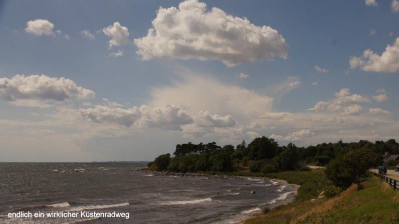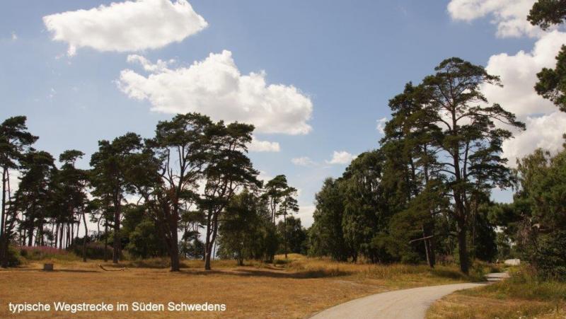 Trommelnder Regen kann im Zelt einschläfernd wirken. Diesmal wurde ich mit dem Gedanken wach „nicht schon wieder“! Gestern hatten wir ja schon nass abgebaut. Der 2. Gedanke: Rumdrehen und weiterschlafen! Gegen 7:30 Uhr musste ich raus; es hatte ja auch aufgehört zu regnen. Der Himmel war tief grau verhangen. Duschen und dann frühstücken. Die Sitzgruppe draußen vor der Küche wurde getrocknet und die leeren Ortliebsäcke als Sitzpolster ausgelegt. Meine schöne Blümchentischdecke breitete ich auf dem groben Holztisch aus. Heißes Wasser war für Kaffee bereit – aber nun goss es wieder in Strömen. Schnell alles zusammengepackt, mein Vorzelt ausgeräumt bzw. die Taschen zur Seite gedrückt und die Blümchentischdecke auf den trockenen Boden des Vorzeltes ausgelegt. Sonst alles wie gehabt. Frühstückszubehör auf die Blümchentischdecke usw. Ich genoss trotz der Enge mit 3 Personen und allen Utensilien das Frühstück – nur der Nachschub des heißen Wassers war durch den Regen zur Küche etwas anstrengend – funktionierte aber. Packtaschen können auch im Zelt eingeräumt werden, nur Heiner bedauerte, dass er keine Sachen zum Trocknen draußen aufhängen konnte. Die Zeit wurde genutzt, um den Blog versandfertig zu erstellen, denn wir wollten ihn dann im Touristenbüro in Ystad (freies WiFi) versenden. Gegen 11:00 Uhr schien die Sonne mit voller Kraft und so wurde das Zelt noch halbwegs trocken. Auch Heiner freute sich über einige trockene Sachen und so stand einem Start zunächst nach Ystad nichts mehr im Wege. Die Stadt ist, wie Jürgen gestern schon geschrieben hat, vom Namen her für viele Krimileser und Fernsehzuschauer spannender Unterhaltung ein Begriff. Die wenigsten wissen aber, dass Ystad einer der größten Umschlaghäfen für Güter von Schweden in die ganze Welt ist. Eine ganze Armada riesiger Fähren und wartender Laster sehen wir in einem supermodernen Hafen. Dabei hat alles mal ganz klein angefangen. Das Tor nach Süden und zum Kontinent bestand damals wie heute aus dem Hafen. Das Postschiff nach Stralsund, das von hier ablegte, war lange Zeit die einzige regelmäßige Verbindung Schwedens zum Ausland. Die Entwicklung der Stadt begann schon im 12. Jh., weil Bischof Absalon Handelsplätze hinunter an die südliche Küste verlagern wollte. Durch die Hansezeit im 14. Jh. festigte die Stadt ihren Handelsplatz an der Ostsee. Heute ist Ystad auch ein Badeort und natürlich ein Drehort für Mankells Wallander-Filme. Nun weiter zu unserem Zielort Trelleborg. Die Strecke verläuft exakt dem Eurovelo 10 bzw. dem Cykelspåret immer entlang der Küste. Das gibt uns Gelegenheit das Leben hier an dem südlichsten Ende Schwedens aufzunehmen. In Smygehuk beim Ort Smygehamn gehts nicht mehr südlicher. Hier ist der südlichste Punkt Schwedens. Ein Leuchtturm vermittelt das auch über die See. Der Strand ist an dieser Stelle jedoch sehr steinig. Zwischen Meer und Radweg entwickeln sich die unterschiedlichsten Eindrücke einer von Natur und Menschen vorsichtig geprägten Landschaft. Riesige und kleine Findlinge („liegengebliebene“ Steine aus dem Rückzug der Eiszeit) sind allgegenwärtig. Aufgesammelt und zu Mauern aufgeschichtet, bilden sie auch hier ein Schutz für Mensch und Tier. Auf trockenen Brachflächen zur Küste werden Schafe und Rinder gehalten. An den überwiegend sandigen Abschnitten findet, insbesondere in der Nähe der Orte, ein Strandleben mit allem was dazu gehört, statt. „6 005“, rief Jürgen! Wir hatten ein paar Kilometer vor Trelleborg die 6 000 km beim Radweg um die Ostsee überschritten. Handabklatschen sofort (neben einer Weide mit dumm drein schauenden Kühen) und ein kühles Bier (2,8 % Alkoholgehalt) am Abend – so soll gefeiert werden. Der Zeltplatz 3 km vor Trelleborg im Ort Gislövs Lage befindet sich unweit der Landstraße in einem mit großen Kiefern bewachsenen hügligen Gelände. Diesmal gab es zum Abendessen kalten Nudelsalat mit Fleischwurststücken und frischen grünen Salat. Mehr als gut gesättigt kroch ich in den Schlafsack und versuchte gedanklich abzuschätzen, wann und wo wir die 7 000 Grenze wohl überschreiten werden. Der Gedanke wurde nicht zu Ende gedacht, da meine Augen einfach zufielen.
