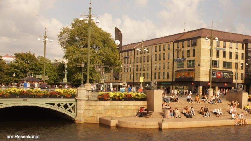 Unsere Unterkunft ist das Linnè Vandrarheim. Wie in deutschen Jugendherbergen können wir in der Selbstversorgerküche frühstücken. Danach hatte jeder seine eigenen Ziele. Jürgen möchte bis zum frühen Nachmittag an seinem Blog arbeiten, Heiner wird sich die Stadt ansehen und Museen und Kirchen besuchen und ich möchte aufgrund der Erfahrungen des gestrigen Abends das Leben in der Stadt erleben. Göteborg liegt direkt an der Küste, die von malerischen Schäreninseln gesäumt ist. Um etwas über die Entstehung der Stadt zu erfahren habe ich in Wikipedia herausgefunden, dass es eine Ansiedlung schon um das Jahr 1100 flussaufwärts des Flusses „Göta älvs“ gegeben hat. Nach der Lage Göteborgs für Schweden ist leicht erkennbar, dass dieser Ort der einzige Zugang zum Atlantik darstellte. Im Mittelalter hatte die Stadt wegen der Meerenge zwischen Ost- und Nordsee eine bedeutende Kontrolle des Ostseezu- und ausgangs. Daher wurde im 15. Jahrhundert eine Festung errichtet um die sich ein Dorf, das Älvsborgs genannt wurde, entwickelte. Soweit die Geschichte und nun zurück zum Tagesgeschehen. Nachdem Heiner und ich uns an der Bank mit Geld versorgt hatten, erklärte ich anhand des Stadtplanes den Weg zur „Altstadt“ und zu den Museen. Mein Weg verlief direkt in die Haupteinkaufszonen. Um in die Innen- oder Altstadt zu kommen, müssen zwei Kanäle überquert werden. Dann öffnet sich insbesondere in der Kungsgatan das Geschäftsleben mit Einkaufsläden, Kaffees und Restaurants. Schon um 11:00 Uhr waren bei schönstem Sonnenschein alle bewirtschaften Außenanlagen voll besetzt. Der offizielle Stadtführer (natürlich in Deutsch) spricht nicht von der Altstadt, sondern von der Innenstadt. Die von mir in den besichtigten Gebäuden sind meist noch „jung“ und stammen frühestens aus dem 19. Jahrhundert. Meist findet man wie in allen europäischen Großstädten sehr moderne „Einkaufstempel“, die erst in den letzten Jahren entstanden sind. Der Göteborger Dom aus dem Jahr 1815 enttäuscht etwas wegen seiner puritanischen Schlichtheit. Schon gestern Abend haben wir die Kristinenkirche , die als deutsche Kirche bekannt ist, entdeckt. Hier wird deutschsprachiger Gottesdienst für Besucher und die 1000 deutschsprechenden Göteborger Christen abgehalten. Sie wurde bereits 1648 eingeweiht und liegt unweit des Hafens. Auf der Außenseite (von der Innenstadt gesehen) des Rosenkanals befindet sich der Kungsparken mit vielen sehr alten Bäumen und einer wunderbar gepflegten Anlage. Hier stieß ich auf eine Gedenkstätte zur Judenverfolgung im 3. Reich. Eine Tafel gibt darüber Auskunft, dass damit der in den Gaskammern umgekommenen Menschen gedacht wird. Da es wohl in Schweden selber keine Judenverfolgung gegeben hat, finde ich diese Gedenkstätte außerhalb Deutschlands sehr bemerkenswert. Die künstlerische Ausgestaltung mit in Bronze gegossenen Schuhen auf einer Eisenplatte und einem gebogenen Schienenstrang neben einer Flammenstele fand ich sehr beeindruckend. Der Park selber geht später in den botanischen Garten über, der mit 16.000 Gewächsarten einer der größten botanischen Gärten in Europa sein soll. Leider konnte ich aus Zeitgründen diesen nicht besuchen. Gegen 15:00 Uhr war ich zurück in der Jugendherberge und schrieb einen weiteren Beitrag zum Blog. Heiner löste mich beim Blogschreiben für seinen Tag ab und berichtete mir über seine Besuche in der Stadt. Am Abend ging ein ordentlicher Regenguss nieder. Wir beschlossen, zum Ausklang des Schwedenbesuches essen zu gehen und steuerten dazu ein indisches Restaurant an. Die drei unterschiedlichen Menüs waren sehr gut und scharf. In der Selbstversorgerküche tranken wir das kühlgestellte Bier und gingen danach gesättigt und müde vom vielen Wandern durch die Stadt in unsere Betten.
