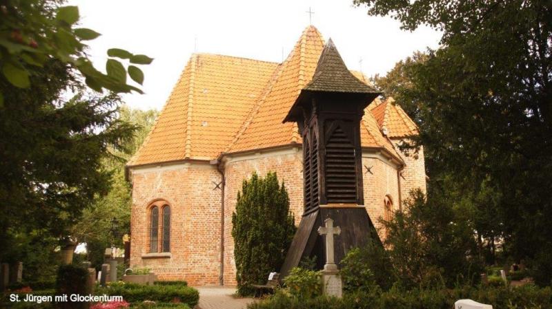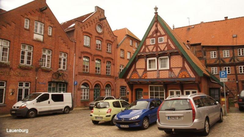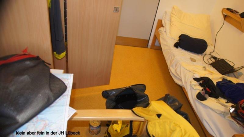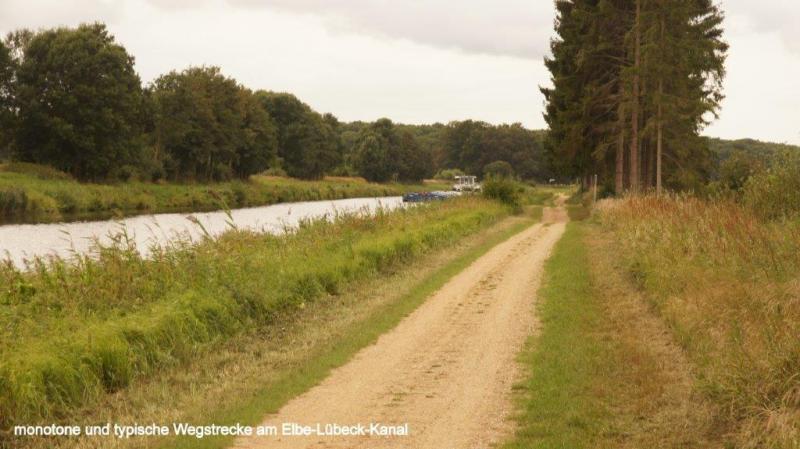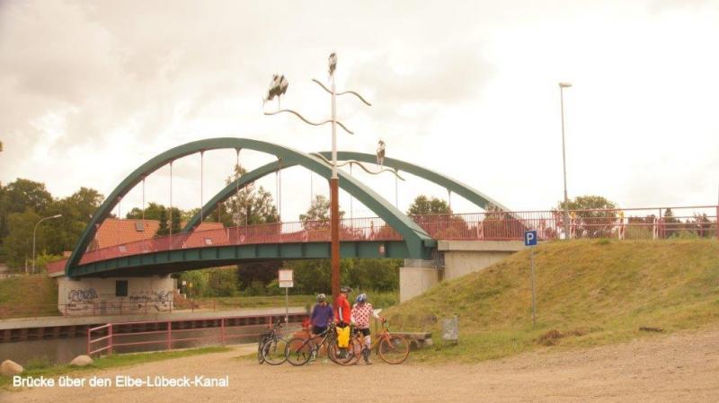 Ich bin schon früh wach und der Erste im Frühstücksraum. Es ist eine Schulklasse hier, die aber glücklicherweise erst später dazu stößt. In der Nacht habe ich erstaunlicherweise nichts von denen gehört! Auch jetzt machen sie einen sehr rücksichtsvollen Eindruck, anders als gestern in Scharbeutz. Packen und Bettabziehen, alles 4 Stockwerke runtertragen und wieder hoch stampfen. Mensch, bin ich froh, gut trainiert zu sein. Ich lade alles aufs Rad und dann suche ich den Elbe-Lübeck-Kanal, der hinter dem Holstentor losgehen soll. Aber ich finde keine Hinweisschilder und außerdem möchte ich ja die St. Jürgen Kirche finden. So etwas gibt es ja im Rheinland nicht und so etwas habe ich auch noch nie gefunden. Über eine breitere Ausfallstraße komme ich schnell in den Stadtteil St. Jürgen. Aber ich muss mich mehrfach durchfragen, bis mir eine nette ältere Dame den Weg erklären kann, der dann gar nicht mehr so weit ist. Umgeben von einem Friedhof ist diese Kapelle in typischem Ostsee-Backsteinziegelbau für ein bis 1847 bestehendes Hospital errichtet worden. Im Inneren, als auch im Äußeren findet sich Georg der Drachentöter, den wir auf unserer Reise in verschiedenen auch politischen Bedeutungen schon gefunden haben. Im Norden wird anstelle des Namens Georg halt Jürgen verwendet und meiner Mutter sei Dank, hat sie mir diesen Namen gegeben. Der Pastor meinte jedoch bei der Taufanmeldung der Georg müsste noch hinzu und Maria als Zusatz wäre dann auch noch zu empfehlen. Daher steht in meiner Geburtsurkunde Jürgen Maria Georg Vosen, wobei nur die ersten beiden verwendet werden! Der schlichte Innenraum lädt zum Verweilen ein und ich habe allen Grund einen stillen Dank für die so schöne und unbeschwerte Reise abzugeben und auch für den Rest meiner langen Fahrt noch um Schutz zu bitten. Danach geht es erst einmal in den Vorstadtverkehr von Lübeck, bis ich dann auf den Elbe-Lübeck-Kanal treffe, dem ich dann immer auf einem begleitenden Kies-Schotterweg rd. 80 km folge. Immer wieder erwische ich mich dabei, dass ich in den Rückspiegel sehe, aber keiner meiner Radelpartner ist hinter mir. Nun könnte ich ein Tempo fahren, wie es mir genehm wäre, aber ich habe mich so in der Trittfrequenz und dem Tempo angepasst, dass ich immer meine Partner hinter mir wüsste. Ich spüre ein komisches Gefühl, es ist nicht die erwartete Unabhängigkeit, die ich auskosten wollte, sondern schon ein wenig ein Gefühl des Verlustes. Es überrascht mich und ich freue mich über wenn auch nur ganz wenige Begegnungen auf meinem Weg. Einer Familie, die an einer Schleuse auf ihrem Motorboot auf die Einfahrt in den Schleusenkanal wartet, während ich vorbei radle, rufe ich zu: „Das wäre mir zu gemütlich!“ Was zu einem netten Dialog führt. In Berkenthin liegt eine Rekonstruktion eines mittelalterlichen Kahns am Ufer. Schon ab dem 14. Jhd. wurde in Lüneburg gesiedetes Salz von Lauenburg mit solchen Kähnen über die Vorläufer des Elbe-Lübeck-Kanals nach Lübeck transportiert. Wie ich so vor mich hin strample, entdecke ich, dass Nacktschnecken immer zielgerichtet exakt im rechten Winkel den Fahrweg queren. Wenn sie wüssten, dass sie dann volle Breitseite bieten und viel gefährdeter sind durch Radfahrer, als wenn sie diagonal queren würden (längs wäre genauso unsinnig). Schei …e, über was denkt man denn so nach, wenn man Stunden alleine fährt? Beim Verlassen des Kanals wird es etwas schwierig nach Lauenburg herein zu finden. Ich treffe jetzt auf viele Reiseradler, die auf der östlichen Seite der Elbe unterwegs sind. Hier sind Ellen, Elisabeth, Karl-Josef und ich im letzten Jahr auch von Hamburg bis Prag gefahren. Ich gehe in die Touristeninformation, hole mir Rat zu einem Campingplatz auf der anderen Seite der Elbe in Hohnstorf und kaufe mir eine Fahrradkarte zur Lüneburger Heide. Im Ort Lauenburg sind noch deutliche Spuren vom Hochwasser aus dem Mai zu erkennen, das wir ja nur beiläufig mitbekommen hatten, da wir ja schon Ende April gestartet sind. Auf der anderen Seite erfahre ich dann, dass der Campingplatz in Hohnstorf ebenfalls komplett hoch unter Wasser gestanden hat. Aber es gibt dann erst eine Ernüchterung, als mir ein Campingbewohner mitteilt, dass der Campingplatz nur noch auf privater Basis benutzt werden kann. Glücklicherweise mache man aber für Radler eine Ausnahme, da diese ja nur immer eine Nacht blieben und die Elberadweg-Führer diesen Platz noch auswiesen. Leider sei der Platzwart aber z.Zt. nicht da und wenn ich einen Schlüssel bräuchte für Toilette und Dusche könne ich ihn geliehen haben. Den Platzwart habe ich auch am nächsten Tag nicht zu Gesicht bekommen, was ich ohne Nutzung der Toilette und Dusche dann auch als kostenlose Übernachtungsmöglichkeit betrachtet habe. Schlimmer war, dass ich auch nirgendwo eine intakte Steckdose fand und damit nicht an Blogs schreiben konnte. Früh am Abend wird alles schnell feucht und klamm und ich verschwinde schon zeitig in meiner liebgewonnenen Hundehütte (wie entwöhne ich mich hiervon nur wieder?).