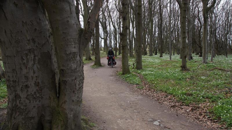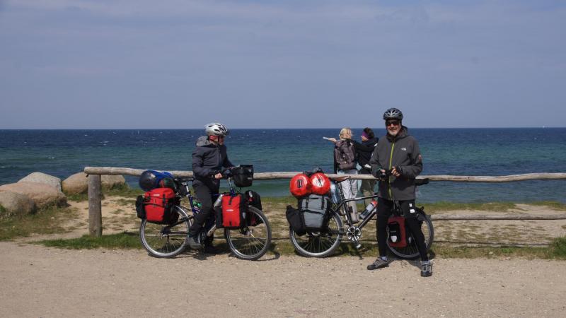 Im wohlbehüteten und insbesondere warmen Umfeld der Jugendherberge Wismar schlafen wir wie die Murmeltiere. Es fällt uns gar nicht schwer, heute mal früh aufzustehen. Wir genießen ein herrliches JH-Frühstück und es gibt sogar Kakao für meinen Kaffee! Auch gekochte Eier, Säfte und leckere Brotbeilagen und ein vorzüglicher Kirschjoghurt bringen uns die Power, die wir dringend für den Tag brauchen. Um 9:30 Uhr saßen wir schon auf den Fahrrädern. Vorher gelang es Karl-Josef noch den Hotspot anzuzapfen und eine News einzustellen. In Stove konnten wir eine noch in Betrieb befindliche holländische Windmühle bestaunen. In der Nähe von Blowatz gab es ein Großsteingrab aus der Zeit von 3200 bis 3000 v. Chr. (sog. Dolmen aus der Frühsteinzeit). Jürgen meinte, die seien ja noch blutjung. In seinem Vorgarten hat er eine Wurzel (Xylit) aus der Eiszeit als Schmuckstück integriert (wie alt muss denn das Haus sein, wenn der Vorgarten erst nach Hausbau eingerichtet wurde?). Im Fisch-Hus in Kühlungsborn haben wir Mittag gegessen: Scholle, Lachs und Backfisch. Danach ging es durch die Ostseebäder Heiligendamm, Nienhagen und Warnemünde. Der Wind war uns wohl gesonnen, die Sonne eher spärlich. Aber überall dick eingepackte Touristen, die uns einen anerkennenden Blick zollten. Nach 95 km landeten wir dann um ca. 18 Uhr auf einem wunderschönen Waldcampingplatz nähe Neuhaus. Bei 2,5 Grad waren wir beim Anrichten des Gemüses aus Pilzen, Aubergine und Tomaten dick eingehüllt. In der Nacht gab es einen kleinen Zwischenfall: Ich vermisste zunächst meine Badeschlappen im Vorzelt und hörte zugleich Karl- Josef und Jürgen erregt feststellen, dass auf dem ganzen Vorplatz die Fahrradtaschen und Kleidung incl. Lebensmittel aus meinem Vorzelt verteilt waren. Karl-Josef tippte auf einen Waschbären. Auch wenn hierzu sicher Zweifel angebracht waren, das Umfeld sah wirklich verheerend aus.