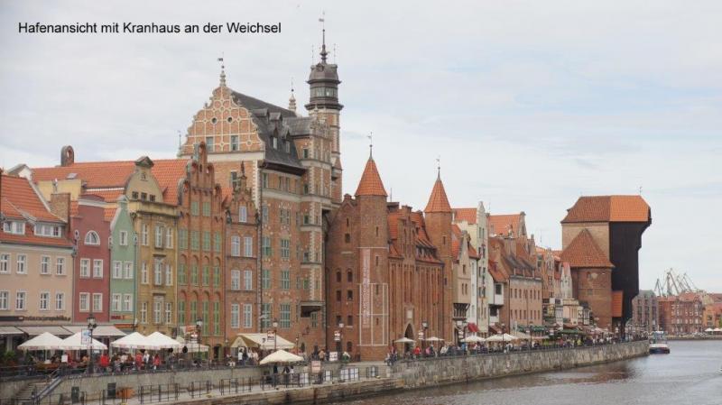 Mit dem Namen „Danzig“ hatte ich bisher nur Ereignisse verknüpft. Werftarbeiter, Solidarność, Lech Wałęsa und damit Freiheitskampf gegen das fehlerhafte politische System. Die Stadt selber ist über 1000 Jahre alt. Immer schon galt sie als attraktiver Ansiedlungsort, der Immigranten aus ganz Europa anzog. Mit einem kleinen Reiseführer besuchten wir die interessantesten Gebäude. Unser so schön zentral gelegenes Hostel mussten wir tauschen und ziehen zunächst mit unserem Gepäck und den Rädern in ein anderes Hostel. Danach ging unsere Stadtbesichtigung weiter. Die Stadt ist teilweise von Mündungsarmen der Weichsel durchzogen. Das ermöglichte selbst für große Schiffe das Erreichen der Innenstadt und der unzähligen Lagerhäuser am Ufer. Sie werden oder sind bereits zu modernen Hotels oder attraktiven Wohnungen umgebaut. Mir fallen insbesondere die dezenten Farbabstimmungen der schmalen und sehr hohen Giebelhäuser auf, die nie von „moderner“ Betonarchitektur unterbrochen werden. Nach langem Streifzug durch die Altstadt gehen wir in ein gemütliches Restaurant. Die Speisekarte ist sehr vielversprechend. Das Essen bestätigte den Eindruck und der Abend wurde dann noch lang und dunkel. Dunkel deshalb, weil plötzlich der gesamte Strom ausfiel und wir uns nun beim Kerzenschein unterhalten mussten. Anscheinend war der Fehler für den Stromausfall nicht zu finden. Jürgen setzte die immer verfügbare Stirnlampe auf und sorgte dafür, dass die freundliche Servierdame Licht zur Erstellung der Rechnung hatte. Mit den vielen Eindrücken über die ehemals reiche Stadt Danzig, in der 1980 der Freiheitskampf durch die erste Gewerkschaft ausbrach, der letztlich das gesamte kommunistische System in Europa stürzte, ging ich müde ins Bett.