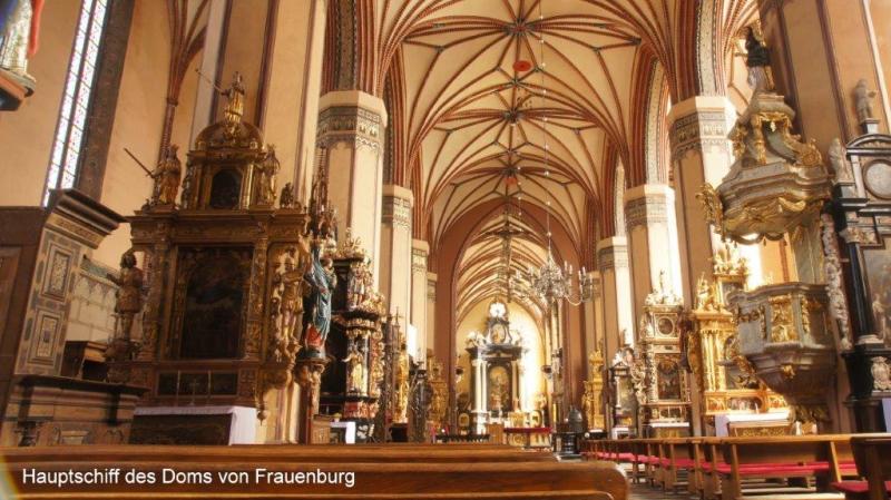 Geschichtliche Anmerkungen Heiner: Frombork liegt im nordwestlichen Teil des Ermlands – Masuren im Kreis Braunsberg (Ostr.). Dort hat vor beinahe 470 Jahre Nikolaus Kopernikus 33 Jahre seines Lebens verbracht und über die „Kreisbewegungen der Himmelskörper“ geschrieben. Gestorben ist er am 21. Mai 1543, er wurde in der gotischen Kathedrale beerdigt, und ist am Montag nächster Woche demnach wie viele Jahre tot? Infolge der ersten Teilung Polens fiel Frauenburg 1772, sowie das gesamte Ermland – wie alle wissen – unter die Herrschaft des preußischen Königs Friedrich II. Den damaligen Status konnten selbst wir nicht durch unseren Besuch wiederherstellen.