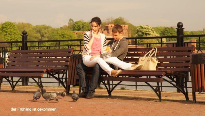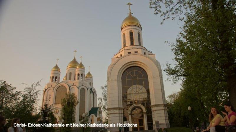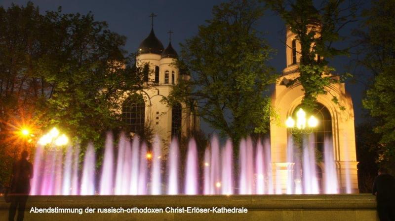 Endlich mal ausschlafen in einem himmlischen Bett. Obwohl, es war etwas warm, nach den letzten Nächten im Freien, bzw. in der Blockhütte. Schnell eine warme Dusche und, noch nass hinter den Ohren, nach unten, wo uns ein tolles Frühstück erwartet. Deftig aber lecker mit viel Liebe zubereitet und was das Schönste ist: 2 große Plastiktüten mit gewaschener und getrockneter Wäsche. Mit viel Genuss wird gefrühstückt, sogar dunkles Brot gibt es. Nur der Kaffee ist ungefiltert, das heißt, Kaffeemehl in einen kleinen Topf und heißes Wasser drauf. Die Kaffeemenge ist überschaubar und so schüttet Heiner uns aus den Vorräten der Küche nochmal den Topf mit Nescafé auf. Danach geht es nochmal aufs Zimmer, wo wir unsere frisch duftende Wäsche in die Packtaschen verstauen und uns ausgehfertig machen. Die gekaufte Landkarte hat auf der Rückseite einen detaillierten Stadtplan der Stadt Kaliningrad (Königsberg), aber…alles nur in Kyrillisch geschrieben. Das hat aber den Vorteil, dass man auch die Straßennamen zuordnen kann, denn die sind ja auch auf Kyrillisch geschrieben. Nachteil ist, dass man die Sehenswürdigkeiten nicht einfach zuordnen kann. Ich muss zugeben, dass ich mich nicht auf Sehenswürdigkeiten zu Kaliningrad vorbereitet habe. Deshalb bevor es losgeht nochmal schnell ins Internet, aber außer dem Dohnaturm Königsberg und dem Königsberger Tiergarten ist nichts Interessantes zu finden. Also machen wir uns auf die Socken, ihr hört richtig, nicht mit dem Rad. Unser Quartier ist ca. 4 km von der Innenstadt entfernt. Wie unvorbereitet wir losmarschieren, kann man daran erkennen, dass wir nicht wissen, wie man an Fahrkarten für einen Bus kommt. Es gibt keine Automaten an den Haltestellen, keine in den Bussen und beim Fahrer geht keine Tür auf und wir sehen auch niemanden dort Fahrscheine kaufen. Also überlegen wir nicht lange und marschieren los. So gut es gestern geklappt hat unsere Pension zu finden, so schwer finden wir uns im Zentrum von Kaliningrad zurecht. Die Beschilderung der Straßen ist nicht gleichermaßen zugeordnet und manche Straßen finden wir einfach nicht. Wie hilfreich wäre es im Navigon auch Russland noch zu haben, aber nur für Kaliningrad (3 Tage)? Wir marschieren einfach Richtung Zentrum und nach 3 Schleifen entdecken wir die die russisch-orthodoxe Christ-Erlöser-Kathedrale. Sie ist mit 73 m das höchste Gebäude Kaliningrads und das größte Kirchengebäude der Oblast Kaliningrad. Seit 2009 dient sie als Metropolitankirche der Diözese von Kaliningrad und Baltijsk. Die Kathedrale ist im traditionellen russisch-byzantinischen Stil entworfen. Das Gebäude ist im Grundriss ein achteckiges Gebäude mit vier weiteren Zwiebeltürmen. Wie alle orthodoxen Kirchen ist auch diese mit farbenfrohen Ikonostasen ausgemalt. Neben der Kathedrale befindet sich eine ursprünglich als Provisorium gedachte Holzkirche. Diese „kleine Kathedrale“ wurde 1996 neben der Baustelle der Christ-Erlöser-Kathedrale errichtet. Also alles relativ neue Bauten. Es war bereits Nachmittag geworden und wir hatten sowohl das Bedürfnis eine Toilette aufzusuchen, als auch etwas zu essen. Wir fanden ein kleines Restaurant hatten aber folgende Probleme: 1. Es gab keine Toilette, 2. Wir konnten dem Kellner nicht verständlich machen, was wir bestellen wollten. Heiner versuchte es mit einer Zeichnung eines Fisches und hatte Glück (s. Foto). Ich zeigte auf das Gericht einer Dame am Nachbartisch, bekam aber nichts. Heiner ließ mich dann die Hälfte von seinem Fischgericht mitessen. Die Toilette fanden wir dann auch noch durch die Hilfe der besagten Frau, deren Gericht ich gerne bestellt hätte, in einem naheliegenden Kaufhaus. Wir marschieren weiter und finden trotz kyrillischer Schrift den Dohnaturm auf der Ostseite des Obersees. Was ich erst später recherchiere ist, dass sich in dieser Wehranlage die bedeutendste Bernsteinausstellung der Welt befindet. Da wir Turm und Ausstellung jedoch nicht zuordnen können, schlurfen wir leider vorbei und finden auch den Zugang zu einem schön gestalteten Boulevard um den Obersee nicht und laufen stattdessen entlang einer verkehrsreichen Straße. Auf Orientierungssuche spricht Heiner eine Frau an, die uns nach einer Auskunft über den Weg überreden möchte, an einem Kongress über verschiedene Architekturformen im baltischen Raum teilzunehmen. Mit Verweis darauf, morgen unseren hochgeschätzten Karl-Josef wieder einfangen zu müssen, sagen wir dieses für Fachpublikum wahrscheinlich hochaktuelle Symposium leider ab. Wir haben unsere T-Shirts mit dem Logo unserer Ostseeumrundung angezogen und werden von verschiedenen deutschen Touristen darauf angesprochen, die uns viel Erfolg für das Gelingen der Tour wünschen. Bei der Umrundung des Obersees fängt es leicht an zu regnen, ein Umstand, den wir fast vergessen hatten;glücklicherweise hört es aber schnell wieder auf. Auffallend bei unserer Besichtigungstour ist, welche großen Gegensätze es gibt. Die dicksten Autos der Marken BMW, Audi, Mercedes und Toyota; Frauen elegant gekleidet mit Stilettoabsätzen der Extraklasse. Auf der anderen Seite die öffentlichen Einrichtungen: Straßen, Bürgersteige, Gebäude und die Straßenbahnen in sehr schlechtem Zustand. Am Abend warten wir noch auf die beginnende Dämmerung, um die beleuchtete Atmosphäre um die Christ-Erlöser-Kathedrale einzufangen. Hier in Kaliningrad ist die Uhr 1 Stunde vorgestellt, d.h. es wird erst relativ spät dunkel. So machen wir uns erst um 22:30 Uhr auf den Rückweg zu unserer Pension, haben aber erhebliche Schwierigkeiten diese zu finden. Nur mit Hilfe vieler Rückfragen an immer freundliche und hilfsbereite Nachtschwärmer finden wir zurück und freuen uns dann wieder in die kuscheligen Betten kriechen zu können.