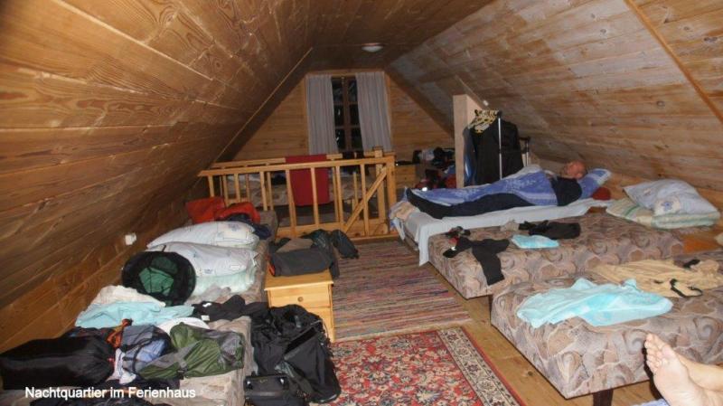 Unter dem Spitzdach standen 11 Betten. Schneewittchen und die 7 Zwerge fehlten. Wir drei verbrachten eine behütete Nacht, natürlich nur in 3 Betten. Also hinkt der Vergleich. Trotzdem waren wir sicherlich genauso glücklich wie Schneewittchen, als sie im Märchen überraschend bei den 7 Zwergen eine Unterkunft fand. Hatten wir doch ein Haus mit Sauna und allem was dazu gehört für uns drei alleine. Unten kochte am Morgen, für uns, die wir nur das Camperleben gewohnt sind, ein Heißwassergerät im Handumdrehen das Wasser für den Nescafé. Genüsslich konnten wir frühstücken, hatten schnell alle sehr schön trockenen Sachen aus Sauna, Wohn- und Schlafzimmer zusammengesucht und gepackt. Jürgen versendete über sein Smartphone die am Vorabend vorbereiteten Mails für den Blog. Wir starten bei 14° C Außentemperatur. Nachdem der Morgennebel sich verzogen hatte, schien jetzt langsam die Sonne und es wurde immer wärmer. Das ließ uns hoffen, nach dem zweiten Regentag unserer gesamten Tour (!!!) wieder eine schöne Strecke in der Sonne fahren zu können. Plan war, nach 30 km in einem am Weg abseits liegenden, vielversprechenden Badeort, Pavilosta, essen zu gehen. Kaum waren wir von der Straße abgebogen, kam uns das Ehepaar entgegen, dass wir in Liepaja an der Fähre getroffen hatten. Sie berichteten von einem verschlafenen Dorf, dass sich wie viele hier an der Küste auf den Saisonbeginn Mitte Juni vorbereitete. Also nach kurzer Überlegung und Checkup unserer Vorräte beschlossen wir an einem „schönen Ort“ ein berühmtes „Jürgensüppchen“ zu essen. Nach 5 km machte mich ein Hinweis mit Zeltsymbol auf eine Wiese 300 m neben der Straße aufmerksam. Unmittelbar über einer Steilküste lud uns ein Wiesengelände mit Bänken und einem Tisch im Blockhausstil zum Verweilen ein. Eine phantastische Aussicht auf die See und ein heißes Süppchen, mit allem, was die Lebensmitteltasche zu bieten hatte, wurde zusammengerührt und ergab mit Brot und Käse ein 10-Punkte-Menü – die Aussicht mit eingerechnet. Im Ort Jûrkalne füllten wir unsere Vorräte für Abendessen und Frühstück des nächsten Tages auf und fanden bald den Zeltplatz Zaki. Ein wunderschöner Naturzeltplatz, auch wie unser Haltepunkt heute Mittag, direkt an der Steilküste. Ein Besitzer war nicht zu finden. Hinweise auf Rufnummer oder Anmeldung fehlten. Wir packten mein völlig nasses Zelt vom vorgestrigen Regen aus. Ein vom Strand kommendes Ehepaar aus Deutschland begrüßte uns freundlich. Sie besaßen ein Haus in der Nähe und kannten den Campingplatzbesitzer und versprachen, ihn zu informieren. Die Sonne hatte nach einer knappen Stunde ihr Werk vollbracht und nicht nur das Zelt getrocknet, sondern sie konnte auch uns durch ihre Wärme erfreuen. Ein anschließender wunderbarer Sonnenuntergang beim Abendessen ließ uns den Regen vergessen. Ein Sonnenuntergang hat immer auch etwas Mystisches und genau diese Frage stellte uns Heiner beim Abendessen, was wir denn unter Mystik verstehen würden. Die Wiedergabe der Diskussion würde unser Tagebuch sprengen und so möchte ich nur mit Fotos vom Sonnenuntergang die Unfassbarkeit eines Geschehens festhalten und euch mit den anschließenden Fotos teilhaben lassen an einem unbeschreiblichen Phänomen.