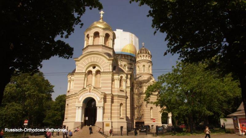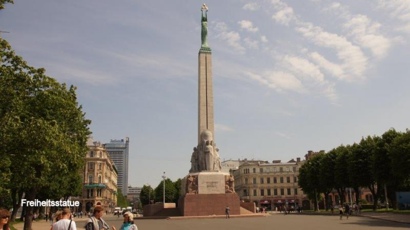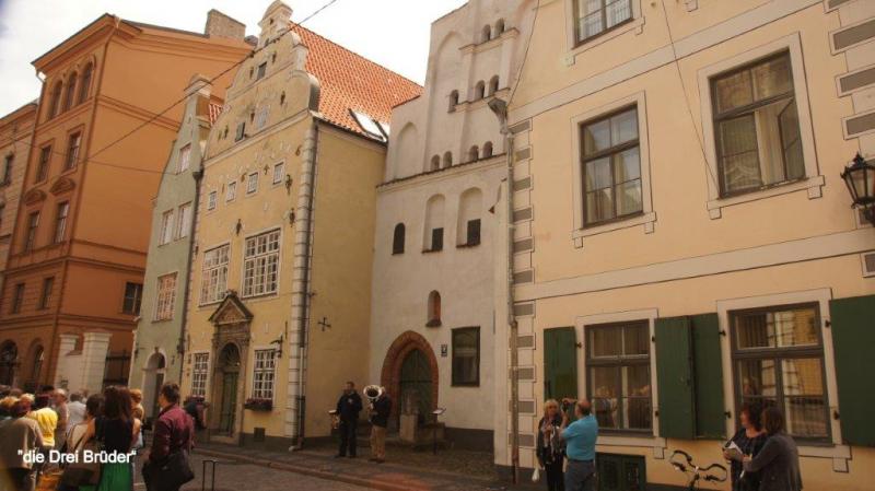 Ich bitte schon jetzt um Entschuldigung, wenn der Bericht möglicherweise etwas ausschweifend wird, aber es kribbelt mir in den Fingern. Einen kleinen Nachtrag vom Vorabend möchte ich noch anfügen. Wir schlafen hier in Riga in einem Hostel. Das ist kein Hotel und keine Jugendherberge, sondern eine einfache Unterkunft mit vernünftigen Betten, alles modern eingerichtet, sauber und Gemeinschaftsdusche und -toilette auf dem Flur. Es gibt eine Küche, die dann auch als Frühstücksraum genutzt wird. Hier in Riga hatten wir die Möglichkeit, unsere Fahrräder über einen Innenhof in einen Raum eines Nachbarhauses zu schieben und dort zu parken. In einem Raum weiter waren Waschmaschine und Trockner, in der wir unsere mittlerweile nicht mehr so ganz frische Kleidung wieder auf einen sozialisierungswürdigen Stand bringen konnten. Der Raum, in dem die Fahrräder standen, war aber so eingerichtet, dass er auch als Aufenthaltsraum nutzbar war, mit großem Sofa. Nach unserem nächtlichen Stadtbummel wollten Karl-Josef und der Autor nun die mittlerweile beendete Wäsche aus der Waschmaschine herausholen, um sie im Dachbodenzimmer aufzuhängen. Zunächst wunderten wir uns, dass in dem Raum (hatte Fenster zum Innenhof) in dem unsere Fahrräder standen, Licht brannte. Wir waren uns aber sicher kein Licht angemacht zu haben, als wir die Waschmaschine gefüttert hatten. Auch war ich mir sicher, die Türe zum Raum wieder abgeschlossen zu haben und wir hatten die Schlüssel an der Rezeption nicht zurückgegeben. Natürlich denkt man als erstes: Was ist mit den Rädern? Ich versuchte die Türe zu öffnen, aber nach einigen Versuchen (Schlüssel musste zum Öffnen gegen unsere gewohnte Drehrichtung gedreht werden und die Türe klemmte auch) stellte ich fest, dass die Türe gar nicht abgeschlossen war. Wir betreten den Raum und entdecken, dass unsere Fahrräder – obwohl abgeschlossen – in einer anderen Ecke stehen. Auf einmal vernehmen wir erst einen kleinen Schrei und dann erscheint vorsichtig um die Ecke spähend aus dem Raum mit den Waschmaschinen ein hübsches junges Mädel, das notdürftig versucht sich schützend mit einem Handtuch ihre Blöße zu bedecken. In einer solchen Situation fällt es natürlich schwer sich auf Englisch zu verständigen, zumal wenn beide fremdsprachig sind. Dennoch gelingt es uns klar zu machen, dass wir nur in der Absicht gekommen sind, unsere Wäsche aus der Waschmaschine zu holen. Auch das Mädchen hatte sich dann wieder beruhigt und erbat sich einige Minuten, um sich anzuziehen. Was müssen zwei so ausgewachsene Nordlandfahrer für einen tierischen Schrecken bei dem Mädchen verursacht haben? Neben den Waschmaschinen befand sich noch eine Dusche und dort war sie wohl von uns gestört worden. Eilig klauben wir unsere Wäsche aus der Maschine, bitten nochmal ausdrücklich um Entschuldigung und erwähnen noch, dass wir davon ausgegangen seien einen unbewohnten Raum vorzufinden. Wie wir dann die Wäsche getrocknet haben, könnt ihr auf dem Bild vom Vortag nachvollziehen. Gut ausgeschlafen geht es gegen 9:00 Uhr dann am nächsten Morgen zum Frühstück. In der Miniküche gibt es einen Minitisch an dem schon ein junges Pärchen sitzt. Nach einigen englischen Floskeln verständigen wir uns darauf, uns weiter auf Deutsch zu unterhalten. Sie stammt aus Dresden und er aus Potsdam. Ihr Großvater stammt aus Riga und sie hat noch einige Verwandte hier, die sie besucht hat. Sie sprudelt nur so Vorschläge aus, was in Riga und auf unserem weiteren Weg in Lettland zu besichtigen und zu beachten ist. Nachdem sie sich verabschiedet haben, kommt ein Mann in die Küche, der uns auf englisch, lettisch und deutsch einen guten Morgen wünscht. Er ist Finne und spricht wie sich im weiteren Gespräch zeigt ganz passabel Deutsch, da er einige Jahre in Deutschland gelebt hat. Er berichtet, dass er eine Tagung in Riga nutzen möchte, um sich in einer Zahnklinik Implantate setzen zu lassen. Gefundenes Thema für Heiner, der eine Lösung für sein Zahnproblem sucht. Als Heiner sich nach der Adresse erkundigt, wird er höflich darauf hingewiesen, dass er wohl keine Klinik sondern einen Zahnarzt benötigt. An der Rezeption erfährt Heiner, dass es einen Zahnarzt 3 Häuser weiter gibt, den er dann auch direkt am Morgen aufsucht, während Karl-Josef und ich unseren Stadtrundgang starten. Im 19 Jhd. entstanden zahlreiche Jugendstilhäuser, die wir zuerst entdecken wollen. Mit einer Karte aus dem Hostel finden wir auch das entsprechende Viertel, das außerhalb der Altstadt liegt. Entlang der Elizabethstraße sehen wir einige Exemplare hierzu, aber schon meldet sich Heiner und teilt mit, dass er erst um 16:00 Uhr zur Zahnarztuntersuchung einen Termin erhalten hat. Wir verabreden uns als Treffpunkt bei der Touristeninformation (in der Altstadt von Riga), finden uns aber schon zufällig vorher auf dem Weg zum gemeinsamen Ziel. So marschieren wir als erstes zur Geburtskathedrale. Sie ist eine Kathedrale der russisch-orthodoxen Kirche und die größte orthodoxe Kirche der baltischen Staaten, die von 1876 bis 1883 im neobyzantinischen Stil erbaut wurde. Im 43 m hohen Glockenturm befinden sich 12 Glocken. Die Kathedrale hat eine bewegte Geschichte, noch von Alexander II. genehmigt und später von den sowjetischen Behörden in ein Planetarium umgewandelt. Nach Wiedererlangung der Unabhängigkeit von der Sowjetunion 1991 wurde die Kirche grundlegend saniert (bis 2006). Bereits 1992 wurde sie als Kathedrale wiedergeweiht. Leider war im Innenraum Fotografierverbot (spornt mich immer erst richtig an), daher nur aus der Hüfte geschossene Bilder. Danach wenden wir uns dann der Altstadt zu. Vorbei an dem Freiheitsdenkmal, das an die erste lettische Unabhängigkeit ab 1935 erinnert. Hier schließt sich ein schöner mit Skulpturen gestalteter Park an. Danach gehen wir zu einem Gebäudeensemble “Die Drei Brüder“. Das Haus 17 ist das älteste profane Steingebäude im Stadtgebiet, es wurde bereits im 15. Jahrhundert