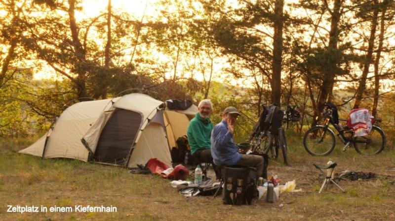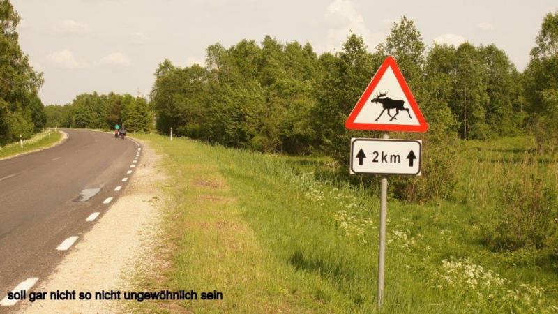 Wir wachen heute bei strahlend blauem Himmel auf. Die Sonne braucht aber noch rund 1 Stunde, bis sie um die hohen Bäume herum gewandert ist und beginnen kann die Zelte zu trocknen. Auch heute Morgen gibt es wieder Probleme mit unserem Coleman Kocher. Ich komme einfach nicht dahinter, was die Ursache sein könnte. Wir haben ja zwei mit. Einen, den ich seit Jahren in Betreib habe und einen Neuen, den wir extra für die Tour noch gekauft haben. Beide haben die gleichen Probleme. Erst dachte ich das falsche Benzin (95 Oktan) gekauft zu haben und dann vermutete ich die kühlen Temperaturen seien die Ursache. Mittlerweile haben wir 98 Oktan und Temperaturen zwischen 18 und 25° und die Dinger wollen immer noch nicht. Warum erzähle ich das? Weil wir morgens immer tierisch lange auf heißes Wasser für unseren Kaffee warten müssen. Aber auch heute gibt es wieder Joghurt, Käse im Überfluss und frische Butter. Die Margarine, die wir noch aus Lettland in einer Dose mitschleppen, ist mittlerweile 4-6 mal während unserer Fahrten aufgeschmolzen worden und die Reste werden entsorgt. Nur die Brotscheiben sind ein bisschen knapp. Aber alle haben genug. Was wir heute am Sonntag vermissen, sind die sonntäglichen Frühstückseier und das, obwohl in unmittelbarer Nähe eine ganze Schar Hühner herumstreunen. Aber von der Familie der Campingplatzbesitzerin schlafen noch alle und selber Eier suchen, trauen wir uns nicht, zumal ein Husky (angeleint) hier Wache hält! In der Blockhütte mit Sauna nutzen wir die Toilette und Wasser können wir aus der Dusche entnehmen. Das Wasser ist erstaunlich frisch und riecht vollkommen in Ordnung, was wir schon lange nicht mehr hatten, daher füllen wir etliche Flaschen auf, zumal der Tag vermutlich sehr heiß werden wird. Im Vergleich zu gestern ist der weitere Weg klar und wir radeln munter drauf los. Nach etwa 9 km hören wir von Heiner erst nervöses Gemurmel und dann ein lautes „Mist“ (es kann auch die verschärfte Form gewesen sein). Was war passiert? Heiner war eingefallen, dass er noch eine recht teure Jacke auf einer Wäscheleine auf unserem letzten Zeltplatz hängen hatte, mit noch einigen anderen Teilen. Er entschied, ich fahre zurück und hole diese. Beiläufig merkte Karl-Josef an, auch noch weiße Socken auf der Leine hängen zu haben, ob er diese ihm mitbringen könnte, was er dann natürlich auch tat. Da wir an einem x-beliebigen Straßenverlauf standen, versprachen wir an der nächsten Bushaltestelle mit Bank zu warten. Wir fahren noch etliche Kilometer, da die Bushaltestellen jeweils da sind, wo es auch Häuser / Weiler gibt und die sind hier manchmal 5 – 6 Kilometer auseinander. Ein nahe gelegener großer Teich bietet während der Wartezeit Gelegenheit mit dem Tele auf Fotosafari zu gehen. Schwirrende Libellen finden allerdings zu selten Zeit, sich mal auf einen Halm zu setzen und dann gibt es noch ein ärgerliches Insekt, dass eine Mischung aus großer Fliege und unserer gefürchteten Bremse ist. Lässt man zu, dass es sich bequem auf eine Hautstelle setzen kann, beißt es zu, aber ohne lästige Nachwirkungen, wie es bei Bremsen- oder Mückenstichen ist. Diese Viecher begleiten uns auch kilometerlang während des Radelns, stehen aber merkwürdigerweise mehr auf unsere Taschen, wo sie sich dann bequem niederlassen und einfach ein Stück begleiten. Man erschrickt nur immer, wenn sie geräuschvoll kreuz und quer an einem vorbei brummen. Die gestern von Jaanus angesprochenen Elche, die nach seiner Schilderung gar nicht so selten Straßen kreuzen und die man durchaus dann zu Gesicht bekommen kann, bleiben uns leider verborgen. Dies wäre natürlich schon ein besonderes Erlebnis für uns. Es geht immer weiter auf einsamen Landstraßen und dann kommen wir plötzlich an eine 5 km lange Straßenbaustelle (steht auf einem Bauschild, mit dem Hinweis der finanziellen Unterstützung durch die EU!). Eine installierte Ampelschaltung ignorieren wir einfach und fahren an der Warteschlange vorbei, da eine Ampelphase für Autos nicht korrespondiert mit der Zeit, die wir mit dem Fahrrad brauchen. Die überholenden Autos fahren wirklich rücksichtsvoll an uns vorbei, aber es gibt auch einige, die durch die sandige, holprige, unbefestigte und lehmige Baustelle mit Karacho fahren und uns kräftig einstauben. Irgendwann ist die Baustelle zu Ende. Wir fahren durch 2 Orte, die in der Karte als größere Orte gekennzeichnet sind. Noch am Anfang der Baustelle war in einem ehemaligen Kloster ein “wie sät me op Kölsch: verdammt füürnehmes Restaurant“ und es kamen ja noch die zwei größeren Orte. Der erste Ort entpuppte sich irgendwie als Garnisonsstandort und der zweite Ort als reine Schlafstätte. Wir fanden weder eine Einkaufsmöglichkeit noch irgendetwas, wo wir was zu essen hätten kaufen können. Wir waren mittlerweile ja schon über 60 km gefahren und bei unserem armen Heiner waren es bereits an die 80 km und wir hatten einen richtigen Hungerast, den auch ein Notproviant bestehend aus Bountyriegeln nicht verhindern konnte. Der Gipfel der Verzweiflung war, als wir einen jüngeren Passanten (die sprechen in Estland eigentlich sehr gut Englisch) nach einem Restaurant frugen. Dieser meinte, das einzige Restaurant sei in westlicher Richtung in etwa 6 km zu finden. Wir fielen fast in Ohnmacht, er meinte genau das “füürnehme Restaurant“ am Anfang der Baustelle. Glücklicherweise war in der Seitenstraße im Ort 2 ein Ehepaar einen Holzzaun am streichen (s.o. es war Sonntag) und dem Mann fiel plötzlich ein (nachdem er zunächst auch auf das westliche Restaurant verwiesen hatte), dass in etwa 8 km in Fahrtrichtung noch eines sei. Er sprach zwar kein Deutsch und kein Englisch, dafür umso umschweifender Estnisch, aber dennoch wurde uns durch Gebärden klar, dass unser Überleben wohl gerettet war. Genauso kam es dann auch und wir hatten eine gute und reichliche Mahlzeit, die wieder wie in letzter Zeit häufiger durch eine Soljanka eingeleitet wurde. Nach dieser