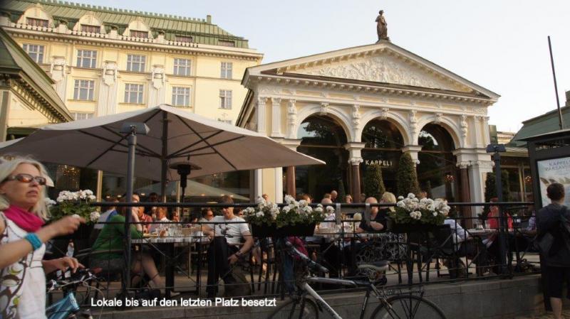 Eine feste Herberge verführt immer auch viele Sachen auszupacken, zu sortieren, umzupacken, vermisste Sachen wiederzufinden! Umso schlimmer ist es dann, wenn es weiter geht. Alles wieder sorgfältig (dafür fehlt dann die Zeit) einpacken. Heute Morgen sind wir aber super pünktlich, denn wir müssen um 9:30 Uhr im Hafen zum Einchecken sein. Das war ja ein „Jedööns“ gestern die Fähre zu buchen. 4-5 mal habe ich versucht, die Tickets online zu erstehen und immer wenn ich mich zum Bezahlstatus vorgearbeitet hatte, kam ein Sicherheitshinweis, dass es auf diesem Wege nicht funktioniert. Ich hoffe, ihr könnt alle meine abgrundtiefe Verfassung nachvollziehen, weil es nicht klappte, aber viel schlimmer war ja, dass meine Radelpartner schon seit einiger Zeit mit Ursel und Dietmar aus Hilden bei einem köstlichen Abendessen und Bier saßen und ich nicht zu „Potte“ kam. Zurück zu diesem Morgen, als wir zum Frühstück in der Küche sitzen (wir haben incl. Frühstück, ab 8:00 Uhr gebucht), ist noch gar niemand da. Aber den Kaffee setzen wir schon mal selber auf und wir haben ja auch noch Brot und Belag aus eigenem Vorrat. Es gibt eh nur Kaffee, Brot, Butter und wirklich außergewöhnlich leckere Marmelade. So um 8:30 Uhr gibt es dann frisches Brot des Hauses, nachdem wir fast schon mit dem Frühstück abgeschlossen haben. Wir haben uns hier dennoch wohl gefühlt und die zentrale Lage hat uns viele und intensive Eindrücke von Tallinn beschert. Nun das Gepäck die steile Treppe runter. Ich weiß nicht wie oft Heiner sich hier nützlich gemacht hat und die einzelnen Packstücke nach unten getragen hat, während der Rest der Mannschaft noch die letzten Dinge zusammen geklaubt hat. Der Versuch auf dem Weg zum Hafen noch das Postamt zu finden, um das defekte Objektiv zurück nach Hause zu schicken, schlägt leider fehl, da wir das Postamt am Busbahnhof nicht finden, wo wir es nach Stadtplan hätten eigentlich finden müssen. Nun geht es zum Terminal D, fast wie an einem Flughafen, nun aber auch mit Fußgänger- und Fahrrad-Zuwegung (vgl. Flughafen Kaliningrad). Schnell haben wir unsere Fährtickets, warten aber vergeblich, dass um 10:00 Uhr der Getränkeladen aufmacht, wo wir unseren Flüssigkeitsbedarf noch einmal auffüllen wollen. Aber als um 10:10U hr ein quasi letzter Aufruf erschallt, dass die Passagiere der „Starline“ sich nun bereitmachen sollten, brechen wir die Warterei ab, schwingen uns auf unsere Räder und sortieren uns in die Spur der einzulassenden Fahrzeuge. Liebe Mütter wir möchten euch nicht in Sorgen versetzen, wir haben zur Flüssigkeitsaufnahme dann doch an Bord der Fähre noch etwas erstehen können, so zu etwa 20% des Preises, den wir in Finnland bezahlen müssten. Seid ohne Sorgen, wir werden schneller abstinent, als uns lieb ist. Beim Einlaufen in den Hafen von Helsinki sehen wir eine Vielzahl von kleinen Inselchen, zum Teil mit einer kleinen Blockhütte drauf. Vom Hafen aus finden wir recht schnell die gebuchte Jugendherberge. Leider sind wir etwas zu früh und müssen noch bis 15:00 Uhr warten, bis wir das Zimmer beziehen können. Mit ca. 100 € für 2 Tage ist dies die teuerste Unterkunft unserer bisherigen Reise, aber mit kompl. Küche, die wir dann aber auch ausgiebig nutzen, indem wir mehrfach uns selber bekochen. Wir sind ja was Preise angeht in Polen, Kaliningrad und den baltischen Ländern wirklich verwöhnt worden, auch wenn die Preise ostwärts angezogen sind. Schon in Tallinn gab es preisliche Überraschungen, aber was wir jetzt in Helsinki erfahren, ist ein Preisschock. Nach dem Beziehen des Zimmers wird erst mal wieder die Möglichkeit zum Waschen mittels Waschmaschine genutzt. Um keine unnötigen Erwartungen aufkommen zu lassen, das Ausräumen der Waschmaschine fand diesmal nur in Anwesenheit eines männlich Wartenden statt, der auf seine Wäsche wartete (s.a. Bericht Riga). Noch am Nachmittag machen wir uns auf, einen ersten Eindruck von Helsinki zu gewinnen. Die Altstadt von Helsinki ist überschaubar (Einwohner Helsinki insgesamt rd. 600.000 Einwohner). Geprägt wird sie durch Massen an jungen Leuten, Businesserscheinungen (McK-mäßig) und für mich auffallend vielen Farbigen. Helsinki ist auch eine Fahrradstadt mit wirklich gut ausgebautem Wegenetz und einer Fahrradautobahn, die 2-spurig ohne Autoverkehr als Ringstraße ausgebaut ist. Die Auto- und Fußgängerquerungen sind zumeist als Brücken über die Fahrradstraße geführt. Wir laufen einmal quer durch die Altstadt, nehmen die unterschiedlichsten Eindrücke dieser quirligen Stadt auf, die Gelassenheit der Menschen. Wir stellen fest, dass die Lokale und Restaurants zum Bersten besetzt sind und trotz der horrenden Preise Bier, Sekt und Wein für diese Menschen anscheinend begehrenswert sind, denn die Tische sind damit gefüllt. Wir tun uns dagegen schwer, aber Karl-Josef drängt in einem Hafen mit Luxusjachten in der Nähe der Uspenski-Kathedrale darauf, dass wir uns in einem Lokal niederlassen, wo wir dann aus einem Plastikbecher jeweils ein 0,5 l Bier zu 6 € haben. Da wir die Sehenswürdigkeiten am nächsten Tag noch einmal mit mehr Zeit besuchen, wird Karl- Josef im Folgebericht darauf eingehen. Obwohl es noch hell ist, kommen wir erst spät nach Hause und meine beiden Kumpels fallen erschöpft und äußerst lichtempfindlich sofort in tiefen Schlaf, während ich noch an den News schreibe.