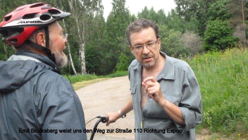 Die drei Rittersleute Altknappe Jürg der Treiber, der allen Rittern sagen muss, was sie zu tun haben, Ritter Hein der Träumer und Altritter Karl der Schöne, Graf von Ellenburg mussten an diesem Freitag schon früh aufstehen, da sie noch einen weiten Ritt mit ihren Drahteseln vorhatten. Sie wollten nämlich die Hauptstadt von Finnland, Helsinki, verlassen und weiter in die wilden Wälder Finnlands nach Norden ziehen. In der Nacht war allerdings die St. Petronilla still und heimlich in das Schlafzimmer der Rittersleute geschlichen und hatte mit ihrem Zauberstab in die Augen der Rittersleut Blindheit geträufelt und ihr Herz mit Geiz geschlagen. Dies merkten die Ritter allerdings noch nicht beim opulenten Frühstück, als es Müsli, Eier und Brot gab. Die Ritterlein mussten doch groß und stark werden, um allzeit mit wilden Bären, Rentieren und Wölfen kämpfen zu können. Als die Rittersleut aber von 9 bis 11 Uhr durch die Stadt irrten und nicht mehr ein noch aus wussten, wie sie aus der verwunschenen Stadt herauskommen könnten, da merkten sie erst, dass sie vergessen hatten, den geheimen Stadtplan zu kaufen. Sie waren wohl von St. Petronilla verzaubert worden. Alle Menschlein, die sie auf dem Weg trafen, konnten den armen Rittern nicht helfen. Denn auch ihnen hatte St. Petronilla die Sinne geraubt und die armen Rittersleut wussten nicht mehr ein noch aus. Nun begab es sich aber, dass in der Stadt ein weiser Mann mit Namen Erich Blocksberg wohnte, aus der Dynastie der berühmten Blocksbergs − ursprünglich ein Hexenversammlungsplatz − aus dem Land Germania, die schon viele kluge Zauberer hervorgebracht hatte. In dieser Nacht nun erschien Klein Erich im Traum seine in allen Munden noch heute hoch gerühmte Großmama Bibi Blocksberg und erzählte ihm, dass drei aus dem Abendland kommende Ritterleute sich in größter Not befänden. St. Petronilla habe sie mit Blindheit geschlagen und nun müssten sie in Helsinki umherirren. Auch trieben die armen Rittersleute in die verkehrte Richtung dem gefräßigen russischen Grizzlybären direkt ins große Maul. Höchste Eile sei geboten! Potz Blitz dachte Klein Erich, was ist denn da zu tun? Er sah in dem alten Zauberbuch nach, das ihm die Großmama Bibi Blocksberg noch auf dem Totenbett mit Tränen in den Augen und den letzten Worten in die Hand gedrückt hat: Verwahre es sehr wohl mein Enkel, du wirst es noch bitterlich brauchen können. Dort stand nun geschrieben: Erst einmal, mein lieber Enkel, musst Du früh und hurtig aufstehen, dann deinen Zauberdrahtesel aus dem Stall holen, mit Heu und Hafer füttern und satteln, sodann drei Mal mit dem Zauberstab in die Luft schlagen, „Hex Hex“ rufen und abwarten, wo der Zauberesel hin reitet. Und es begab sich um ca. 11 Uhr, als die Sonne mit ihren heißen Strahlen die kahlen Häupter der Rittersleute schon ziemlich verbrannt hatte, dass er sie verlassen auf einer einsamen Wegkreuzung antraf. Sie jammerten und schluchzten und Klein Erich erbarmte sich ihrer, indem er ihnen anbot, voraus zu reiten und den geheimen Pfad 110 Richtung Espoo zu zeigen. Er rief ganz laut „Hex Hex“, wie er es von seiner seligen Großmutter Bibi Blocksberg gelernt hatte und schon ging es über Stock und Stein so schnell, dass es den armen Rittersleut angst und bange wurde. Sie sprangen über Bächlein, Wäldchen und Seelein und ehe sie sich versahen, waren sie auch schon auf dem richtigen Trampelpfad 110 nach knapp einer Stunde. Die Rittersleute bedankten sich ganz unterwürfig bei dem tapferen Erich und ließen noch schöne Grüße an die selige Frau Großmama Bibi Blocksberg ausrichten. Jetzt trappelten die drei Rittersleute, nämlich Alt-Knappe Jürg der Treiber, Ritter Hein der Träumer und Altritter Karl der Schöne, Graf von Ellenburg, unbeschwert weiter, zwitscherten ein fröhlich Liedchen von vergangenen Heldentaten, als sie noch mit wilden Bären gekämpft hatten und wunderten sich sehr, dass sie viele anstrengende bis zu 70 Meter hohe Berge zu überwinden hatten. So wurden sie schnell müde und suchten ein Nachtquartier für sich und ihre tapferen Drahtesel, die auch noch den ganzen Tag kein Heu, geschweige denn Hafer zu fressen bekommen hatten. Endlich fanden sie im tiefen Wald bei Koisjärvi einen Platz zum Schlafen. Knappe Jürg und Altritter Karl fielen gleich wie tot auf der Wiese neben dem Trampelpfad nieder, wachten aber gleich auf, als sie üble Gerüche wahrnahmen. Sie mussten sich wohl neben einer Jauchegrube niedergelegt haben. Ritter Hein zeigte ihnen aber flugs einen höher gelegenen Rastplatz, wo sie dann ihre müden Häupter niederlegen konnten! Als sie so in Tiefschlaf fielen und über den ach so anstrengenden Tag träumten, trug es sich aber zu, dass fern in der Heimat die edle Burgherrin Ellen die Abwesenheit ihres ach so sehr geliebten Karl dem Schönen nutzte und auf Ellenburg ein rauschendes Fest veranstaltete. Von Colonia waren angeritten Graf Aron mit seiner edlen Burgherrin Reinhild, die ganz mit kostbarem Geschmeide behängt war. Dem Grafen Aron musste die edle Frau Ellen gleich den goldenen Thron ihres abwesenden Gatten anbieten. Zu viele arglose Holzbänkli hatten schon ihr junges Leben lassen müssen. Auf dem Throne sitzend haben schon viele gedacht, da säße der Kaiser Barbarossa persönlich − aus dem Kyffhäuser auferstanden − vor ihnen. Weiter auf dieser Party waren ferner Graf Volker von Schloss Crefeld mit seiner edlen Schlossherrin Elvira. Graf Volker musste mit einer Sänfte durch die Türen getragen werden. Graf Karl der Schöne hatte gespart und die Türen waren für diesen Hünen von einem Grafen viel zu niedrig. Ferner war geladen und auch erschienen die edle Ehefrau des Ritters Hein des Träumers. Diese hatte die edelsten Weine mitgebracht und so wurde das Fest immer lauter und fröhlicher, wobei die Gäste leider der Spielsucht erlegen waren. Die Gold- und Brillantengeschmeide klirrten zusammen mit den Gläsern voller Wein und als alle schon ganz benommen waren,