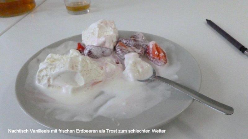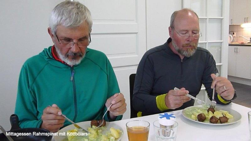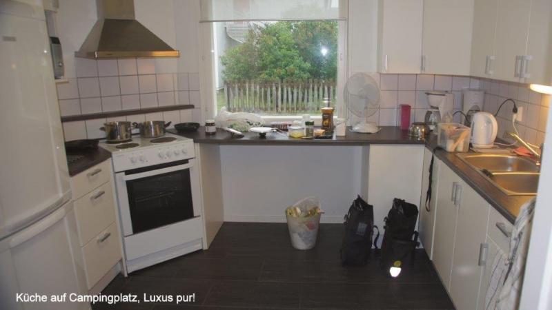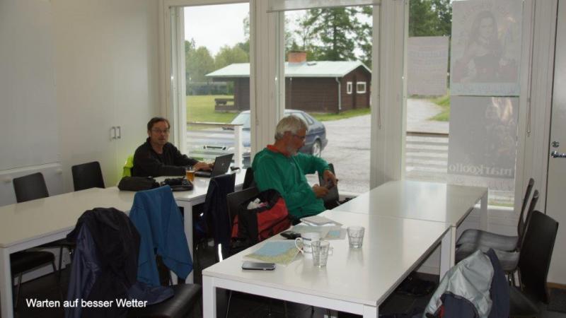 Da wir letzte Nacht nach Auswählen von Bildern für unseren Blog erst ca. 0:30 Uhr ins Bett kamen, schlafen Karl-Josef und ich erst mal bis 8:00 Uhr aus, während Jürgen schon am Laptop im Aufenthaltsraum sitzt. Während des Frühstücks fängt es bereits heftig an zu regnen und wir beschließen bis mittags zu warten. Karl-Josef schreibt, ich lese…. Ca 15:00 Uhr fährt Jürgen in den Ort zur Post. Er will meinen defekten Nabendynamo und einige überflüssige Dinge nach Hause schicken. Gleichzeitig erledigt er den Einkauf. Ich versuche währenddessen den Mantel vom Vorderrad besser zu zentrieren. Bei der neuen Felge stellt sich dies als sehr schwierig heraus. Gestern „eierte“ jedenfalls mein neues Vorderrad nicht unerheblich. Um 17 Uhr schließlich regnet es immer noch und wir melden uns für eine weitere Nacht an. Die voll ausgerüstete Küche darf als luxuriös eingestuft werden. Der Aufenthaltsraum ist auch sehr schick. Also war die Qual der Wahl nicht allzu groß, obwohl die Schweizer Freunde Sepp, Werni und Eddi unser Kommen in Jakobstad per E-Mail schon mit dem Hinweis angemahnt haben: Das Bier stünde ja schon kalt! Es gibt − von Jürgen zubereitet − Kartoffel, Spinat, Spiegeleier und kleine Frikadellen (Kötbullar) zum Abendessen, alles sehr köstlich, vor allem aber der Nachtisch: Vanilleeis mit Erdbeeren lässt uns das schlechte Wetter vergessen. Eine Gruppe von Frauen in traditionellen Kleidern mit Kindern taucht im Aufenthaltsraum auf und sorgt dafür, dass es nicht mehr langweilig ist. Sind es Finnen, Schweden oder Romas? Wir wissen es nicht genau. Sie bleiben wohl die Nacht auf dem ansonsten leeren Campingplatz, um dann bei der Mittsommernachtsfeier dabei zu sein. Unelma in ihrer Tracht lässt sich von mir fotografieren. 19:00 Uhr baue ich meinen Zeltschlafplatz wieder auf, ruhe mich noch etwas aus und verbringe den Rest des Abends mit den Jungs im Aufenthaltsraum. Ab 20 Uhr hört es auch auf zu regnen und wir haben die Hoffnung, morgen wieder weiter gen Norden aufbrechen zu können. Um 21 Uhr beginnt das große Abendessen der Trachtengruppe mit Männern und es wird sehr laut. Erst essen die Männer, dann erst die Frauen. Gegen 10:30 Uhr erfahre ich, während ich den Text über die Schären schreibe, dass wir von der sehr freundlichen Chefin des Campingplatzes ein Apartment angeboten bekommen haben (ohne Zuzahlung!). Wir nutzen die Chance, weil wir jetzt auch die Zelte trocknen können. Auch erfahren wir, dass die Gruppe aus ungarischen Romas besteht.
